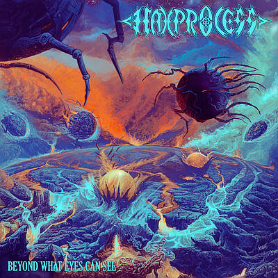 Cette longue remise en place de la vérité aura surtout comme objectif de servir de magnifique rampe de lancement à cette chronique du deuxième album de Haxprocess. Parce que, pour le dire assez rapidement, le meilleur album de death metal progressif et cosmique de 2024 est sorti en 2025, et c'est précisément ce What Eyes See Beyond qui nous occupera ici. Alors, au-delà des blagues et du cynisme, l'idée n'est pas tant de comparer qui, d'un groupe émergent archi prometteur et d'un autre de darons au pic de leur art, est ici le meilleur que de chercher à célébrer l'essence du death metal à forte consonance prog. A ce titre-là, par contre, le nom de Haxprocess est digne de figurer à côté de celui de Blood Incantation tant l'effort pour produire une musique tortueuse de qualité est intense. Parce que What Eyes See Beyond est la salade de riffs la plus délicieusement complexe que vous entendrez cette année.