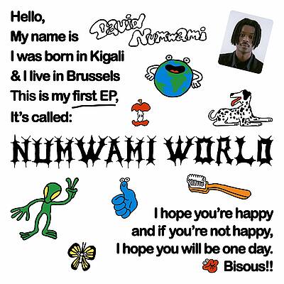 On y est enfin, dans le monde où tout semble si simple. Les harmonies nous font sourire, les mots flottent, les rythmes pop nous donnent envie de pousser quelques pas de danse. Pourtant les messages qui s’y cachent ne sont pas forcément tout aussi roses et l’on comprend soudain que cette apparente légèreté ne fait qu’enrober une réalité un peu plus sombre. Et là où l’on voudrait opposer joie et tristesse comme les smileys qu’il a tatoué sur ses doigts comme unique dualité, David Numwami crée un monde où elles s’entremêlent, honnête et sans filtre, dans une élégante complexité.
