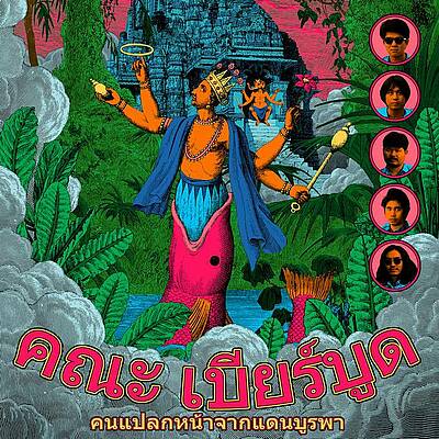 Quand se fait ressentir l’envie d’écouter autre chose que les 10 mêmes disques du moment ou de sortir un tant soit peu de sa sempiternelle zone de confort, il y a plusieurs moyen d’aller se fournir en came fraîche : on peut s’en remettre à l’algorithme d’une plateforme de streaming, un label qui nous a toujours inspiré confiance, un papier bien torché ou les recommandations d’un pote. Puis il y a les artworks d’Elzo Durt. Par le passé, le génial graphiste bruxellois a multiplié les collaborations avec des projets qui avaient pour seul dénominateur commun de le faire kiffer et, ces dernières années, il a mis ses talents (et donc ses improbables collages) au service des Oh Sees ou de La Femme, et plus globalement de tout ce qui gravite autour de Born Bad ou Teenage Menopause - label qu'il gère et qui héberge des joyeux drilles de la trempe de Jessica93 ou JC Satàn. Cette fois, c’est à la demande de Guruguru Brain qu’Elzo a activé les zones les plus droguées de son cerveau pour un résultat comme d’habitude impeccable. Encore fallait-il que le contenu soit à la hauteur du contenant. Mais pas de souci à se faire de ce côté-là. D’abord, le label qui opère entre Amsterdam et Tokyo est à la hauteur de la mission qu’il s’est fixée : orienter les projecteurs sur le meilleur de l’underground asiatique. Et c’est du côté de la Thaïlande qu’il est allé chercher les gars de Khana Bierbood, dont le premier album est produit par Go Kurosawa de Kikagaku Moyo. Ceux qui gravitent dans ces sphères psyché savent que l’évocation de ce seul nom est déjà bon signe. Mais tandis que Kikagaku Moyo donne plutôt dans le folk, les gars de Khana Bierbood ont juré fidélité au rock garage, dont l’ADN californien se voit exporté sur les plages idylliques de Bang Saen, où le groupe dit être né. D’ailleurs, à l’écoute des 7 titres de cet album très (et un peu trop) court, on se dit que c’est là que le studio a dû être installé : son cracra, matos d'époque et effets en pagaille ont pour unique but de nous faire croire que ce disque est une réédition et que le groupe a fait les quatre cents coups avec les Troggs ou les Sonics. Mais les gars de Khana Bierbood ayant pris le parti de chanter dans leur langue maternelle, on a quand même droit à cette petite dose d'exotisme qui, soyons honnêtes, est l'un des arguments pour nous pousser à donner sa chance à ce disque. Parce que pour le reste, pour une bande de types qui se présentent comme des "étrangers de l'Extrême Orient", la manière dont ils intègrent les codes d'une musique essentiellement occidentale fait surtout d'eux des cousins pas bien éloignés des Black Lips ou de King Khan. Heureusement, il y a vraiment pire comme filiation...