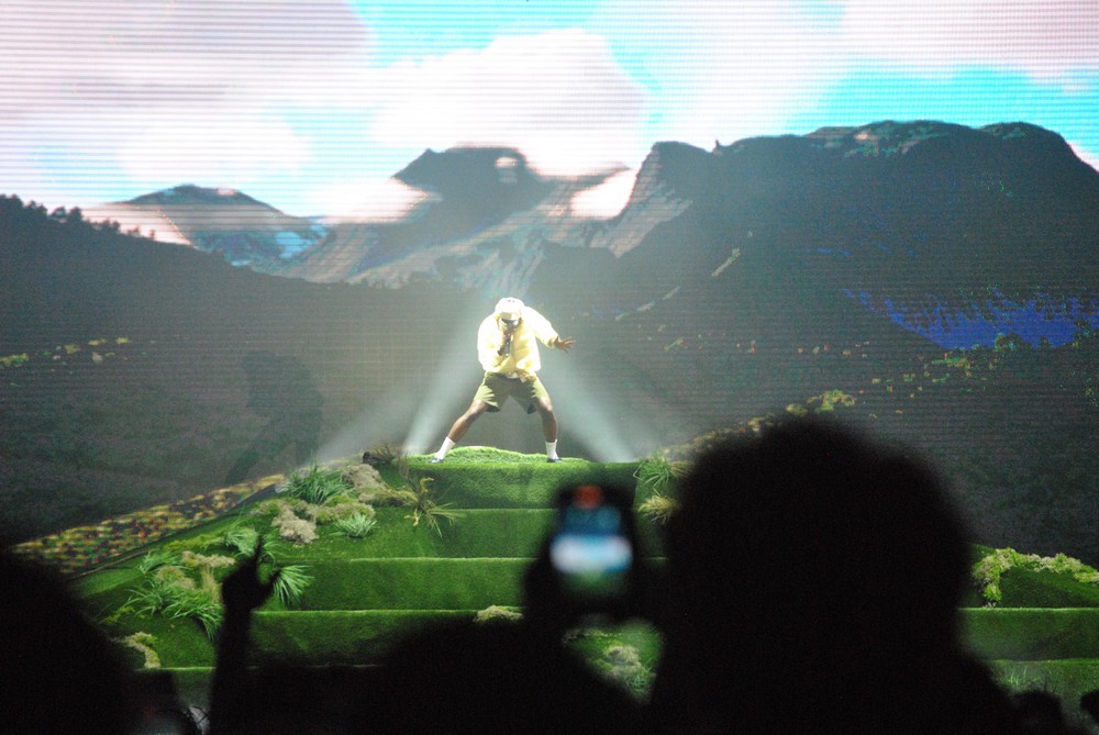 Il était aussi question de maîtrise au concert de son compatriote, A$AP Rocky. Bien plus que les lance-flammes, la scénographie titanesque avec son crash test dummy gonflable, les allées et venues déjantées, la cagoule de luxe ou les soutiens-gorges ramassés en nombre avec une fierté crasse, l’américain a surtout impressionné par sa gestion : entre chaque morceau, il prenait le temps d’observer la foule, sans nécessairement lui adresser la parole. Des silences parfois longs qui lui permettaient de prendre le pouls et la mesure de l’énergie qu’il allait devoir investir dans le titre à venir. Des silences qui parfois forçaient l’attention du public et préparaient au mieux la prochaine explosion ; un professeur en pleine leçon.