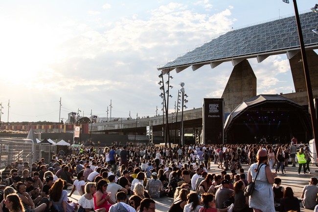 Le site, tout d’abord, est majestueux. Certains diront qu’il est simplement à la hauteur de l’évènements et ils n’auront pas tort : entre les scènes avec vue sur la Méditerranée, les incursions contemporaines toutes barcelonaises, ce jeu entre ambiance balnéaire et environnement industriel (côté Primavera Bits), tout est beau et grand. La navigation est extrêmement fluide grâce à un réseau de chemins particulièrement clairs, en plus d’être bétonnés, qui permettent le même accès par des routes différentes. Tous ces chemins étant parsemés de bars à foison et de toilettes un peu partout. Comme si cela ne suffisait pas, une armée de bénévoles en chasuble jaune surgit à chaque fin de concert pour nettoyer intégralement le sol de tous les détritus, gobelets et mégots en tous genres. Si bien qu’on boufferait à terre, des deux grandes scènes aux endroits les plus confidentiels. C’est peut-être le véritable avantage de faire fonctionner les scènes en binômes : quand la fête s’arrête sur l’une, elle commence directement sur l’autre (si bien que les deux grandes scènes sa faisant face, il n’y a qu’à se retourner pour se placer au concert suivant). Vous avez dit un must ?