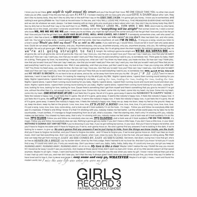 Father, Son, Holy Ghost, le deuxième album de ces branleurs patentés de Girls, ne sortira que la semaine prochaine. Notre chronique est déjà prête et en attente de publication. Mais en attendant qu'elle passe par les mains expertes de notre secrétaire de rédaction, vous pouvez d'ores et déjà vous enfiler ce disque dans son intégralité sur Hype Machine. C'est du streaming bien sûr, et c'est ICI que ça se passe les petits loulous.